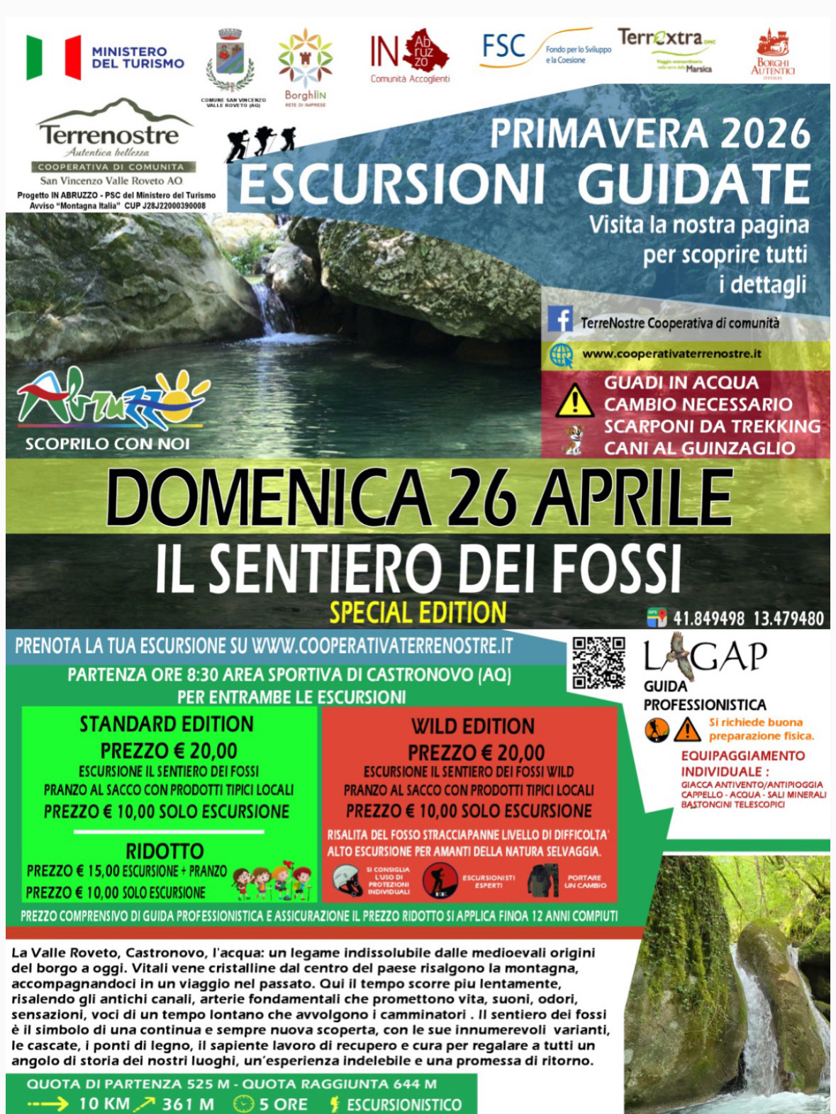 Una bellissima escursione alla scoperta del territorio con la possibilità di fare un'esprienza "standard" o "wild" per gli appassionati e con grado di difficoltà elevato.